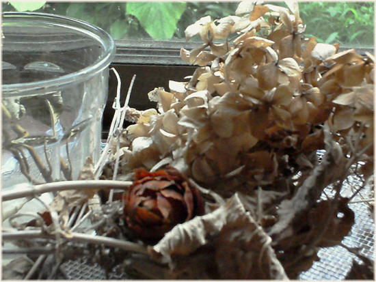 ベランダから巻き付きそびれた朝顔がゆらりゆらりと顔を出している。